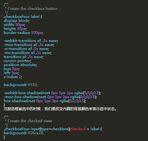 因為這個樣式的復選框,一個label不足以完成任務,我們用一個DIV元素包含checkbox,我們需要使用它們來做黑色條帶和圓角。