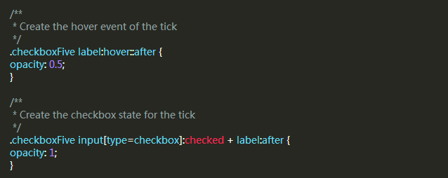 在上面的CSS中,我們已經設置它的透明度為0.2,所以你會看到的復選框有一個半透明的對勾。你可以在懸停的時候加深一點,在選中時,可以把設置為不透明。