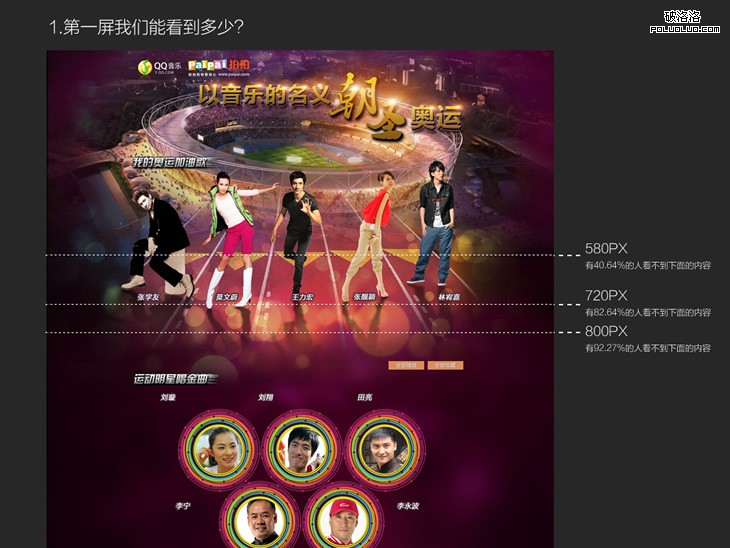 建議將最主要的信息顯示在580PX高度的范圍以內 讓用戶打開網頁第一屏就可以直接看到不用向下滾動