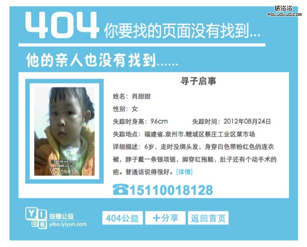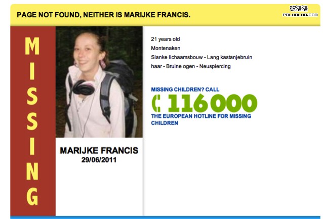 歐洲的一家公益組織Child Focus在去年10月推出了一項名為“NotFound”的計劃,利用網站的404頁面幫助找回走丟的孩子。