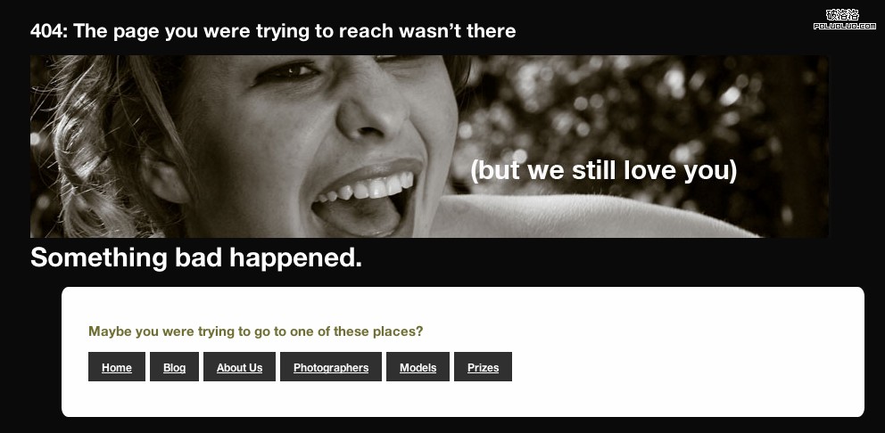 美女圖片的社交網站Zivity,首先告訴了用戶頁面沒有找到,使用了美女圖片:雖然一些不好的情況,但我們仍然愛你。最後依舊讓用戶選擇想要去的地方。