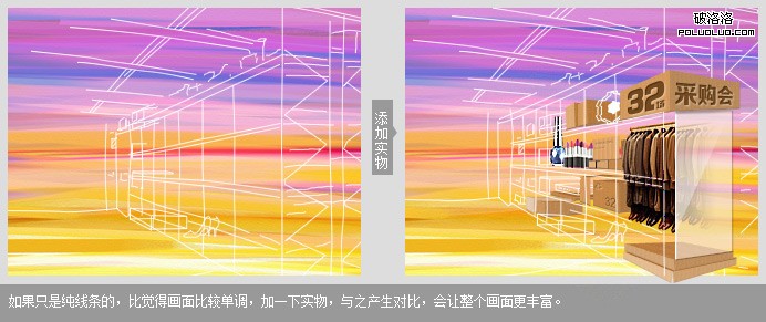 2.畫出線描後根據背景色的主色調對線條進行粗細及顏色調整。然後再添加一些實物做一下對比。