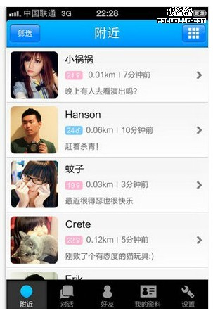 陌陌在微信這種強大的競爭對手面前,是怎麼生存並壯大起來的?況且微信也可以通過查看附近、搖一搖等方式聯系陌生人。拋開產品定位、營銷等問題,我想對比一下設計方面的區別。
