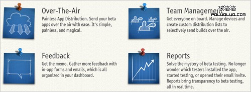 描述一個產品特性可能需要好幾行字,如果用手繪的話,一張圖就夠了。著名的應用測試服務 TestFlight 在其網站上介紹特性時使用了四個便簽形式的草圖來配合文字描述。在傳遞產品特性信息的同時也使網站變得圖文並茂,更加易讀。