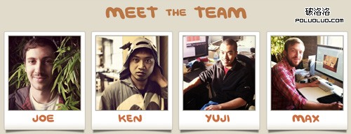 用戶總是會很想知道網站、產品或者服務背後的人,因此一個有愛的團隊展示頁面上顯得尤為重要。僅僅提供聯系方式是遠遠不夠的,還需要向用戶展示他們要聯系的這群人有著怎樣的個性和氣質,要讓團隊顯得平易近人而又值得信賴。要達到這樣的目的,使用手繪圖片是一種很好的做法。例如——