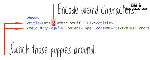 我們應該在代碼中使用字符編碼來實現,比如說“&”我們在代碼中應該使用“&”來代替他。
