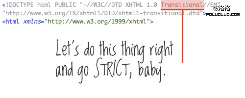 由於我們現在的布局不需要table布局也能做出很好的布局,那麼我們就可以考慮不使用過渡型而使用嚴格型的“DOCTYPE”,為了向後兼容,我建議使用HTML5的聲明模式: