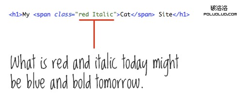 這裡所說的命名就是給你的頁面中相關元素定義類名或者是ID名,很多同學都有這栗的習慣,比如說有一個元素字體是紅色的,給他加上“red”,甚至布局都寫“left-sidebar”等,但是你有沒有想過,如果這個元素定義了“red”後,過幾天客戶要求使用“藍色”呢?或者又說,那時的“left-sidebar”邊欄此時不想放在左邊了,而是想放在右邊,那麼這樣一來我們前面的命名可以說是一點意義都沒有了,正如下面的一個圖所示: