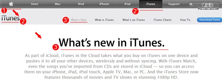告訴用戶下面的內容都是講itunes,右邊的itunes的頁面菜單導航告訴用戶itunes頁面的內容分類,其中不一樣狀態的what’s new