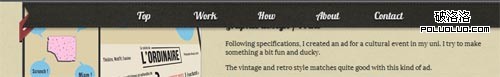 Rodolphe Celestin該網站的置頂導航橫跨網站的頂部,但當你向下滾動頁面時,導航的設計就會發生細微變化。只要保持好一致性,如此簡化該設計是一個很好的技巧。同時,該網站的設計者還采用了當下正流行的設計方法:整個網站只有一個頁面,導航上的鏈接是一個個錨點,點擊後可以跳到頁面的相應位置。這些都使該網站使用起來很舒服。