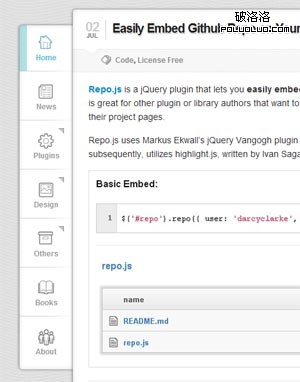 該網站的導航是垂直的,位於左側,與Google+的導航有點相似。它唯一的缺點是,如果屏幕的高度低於560像素,那麼菜單下面的部分就無法訪問了,我在上網本上測試該網站時發現了這個問題。