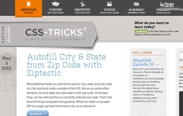 CSS Tricks 是學習CSS的最佳去處,發布關於CSS各個方面的教程,想加強CSS技術的朋友一定要收藏。