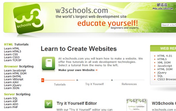 W3Schools 擁有非常齊全的 Web 開發技術資料,包括 HTML/CSS/JavaScript/ASP.NET/PHP/Web Services 等等。