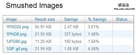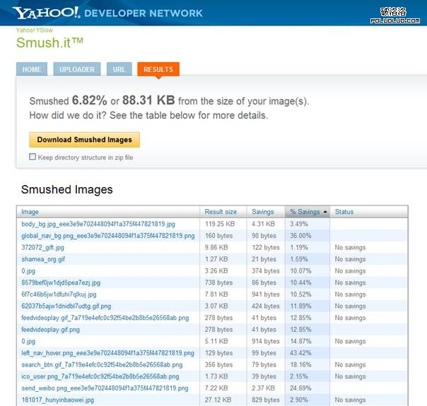 點擊All Smush.it™,會自動跳轉到http://www.smushit.com/ysmush.it/得到下圖: