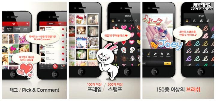 如果說instagram是一款“文藝風格”的照片社區應用,那麼Naver出品的Pick就是一款“卡哇伊風格”的照片社區應用,近年來日韓風盛行,Pick的卡哇伊風格吸引了很多亞洲女用戶,根據XXX定律:“女孩扎堆的地方總能吸引到男孩”事實確實如此!