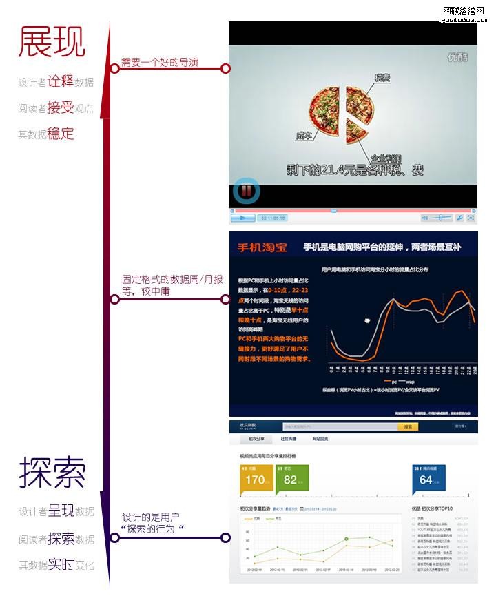 以下通過一張圖來表達“展現——探索“維度的含義。