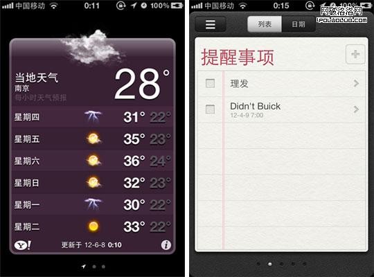 平鋪頁面,顧名思義就是一張或者一疊紙片,平鋪展示給用戶,用戶通過左右拂動來切換不同的頁面,它適用於沒有信息層級,沒有組織架構,且每個頁面的界面類型一致的應用,一般在短小精煉的功能工具性應用較為常見,比如IOS自帶的天氣預報。平鋪頁面模型的優點在於“頁面”元素的數量和順序可以隨意改變,且分頁標簽高度只有6px,可供內容展示的區域大;缺點在於頁面數量不能太大,否則浏覽起來麻煩,用戶還需記得哪個“點”代表什麼內容;