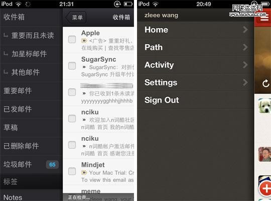 隨著path出現,左側導航可以說脫離了傳統的ios交互結構,這種新穎的導航模型也越來越受到大家的青睐。可以說左側導航是集眾家之所長,取其精華去其糟粕,具有無限的功能拓展性,可實現用戶自定義;界面邏輯清晰,物理層次明了;視覺上搭配精美icon圖標,眼動軌跡垂直單一,視覺負擔小;且不像九宮格專用首頁來展現導航,左側導航將首頁展現的舞台留給了最核心的功能,它僅是一個“附屬功能”,隨叫隨到,不喧賓奪主,卻又給人留下深刻印象;所以我們可以看見越來越多應用采用了這種導航模式,如最新版的facebook、QQ朋友、National Parks等等,可謂時下潮流;當然左側導航目前在一些應用中也存在不足,比如調用該導航時必須到首頁點擊左上角的“列表”圖標,而不能在任何界面通過某種手勢來隨叫隨到。