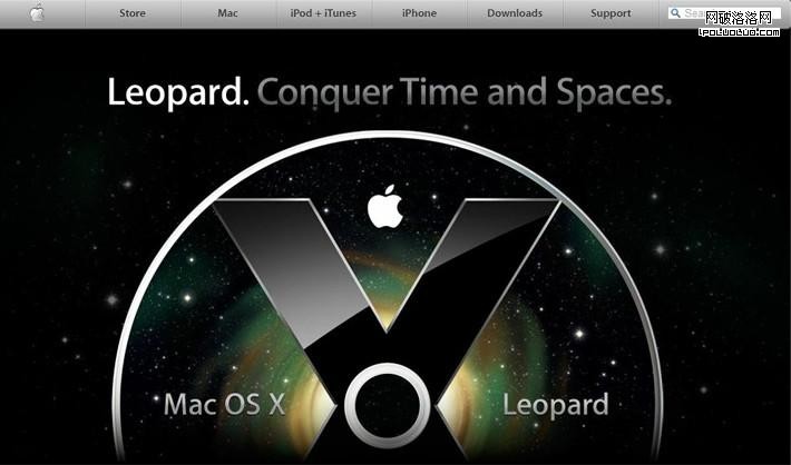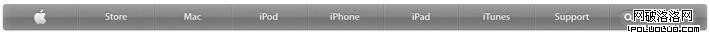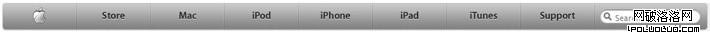 2007的導航徹底改變。采用灰色系的質感表現。apple logo細致的質感替代了原有的單色處理手法。去除了tab式二級導航。