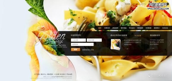 如果上面的頁面布局仍然讓人覺得中規中矩的話,下面的一個酒店的主頁的布局也許會讓我們感覺有些新意。可以看到,此設計的背景用了大幅的食物圖片,導航和主內容區只占到整個頁面高度的三分之一,讓背景的圖片大面積的呈現出來,和上面的設計一樣,這樣布局的目的並非單純是為了標新立異或者是為了視覺上的美觀,而是該酒店的特色也許就在於餐飲方面,所以為了對核心內容進行突出,在布局上做了相應的考慮。再下面的一張餐廳也在主視覺部分強調了美味的食物,但兩者采用了完全不同的布局方式,雖然各自有信息架構方面的獨特考慮,但是也不妨將它們看作同樣一種核心內容的兩種不同的創意方式。