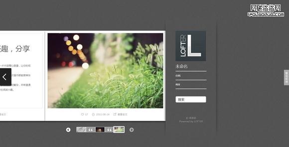Lofter是網易提供的輕博客服務,其中的信息類型主要有四類:即:圖片、音樂、文字、視頻。關於Lofer的模板設計,木偶同學在《LOFTER輕博模板設計》一文中對主要展示圖片的模板的有如下設計方面的考慮,”該模板通常是為了滿足攝影用戶,圖片展示面積要夠大,夠爽;模板首頁一屏能看多圖;背景要暗,突顯當前圖片;邊框的設計讓圖片更突出,或讓圖片更精美。”通過分析和理解此設計思路,我們能夠發現,其中的圖片展示面積要夠大,也就是我們上面提到的布局方面的考慮,而背景要暗即是我們這裡要討論的對於色彩方案的影響。