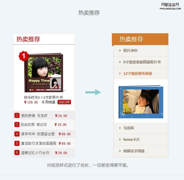 摒棄官方動態、微博、買家熱評等雞肋版塊,加強力度突出焦點輪播banner、產品促銷區等重要版塊,讓產品區得到更好的展示。