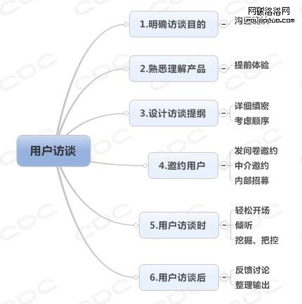 在實驗室的一個小時左右的時間裡,需要將准備好的問題全部輸出給用戶,對於用戶來講,可能也是一次“考試”,所以一個輕松的開頭氛圍,才能更容易讓用戶真實的表現自己比如可以是一些和訪談不太相關的語言(怎麼過來的,路上車多不多,平時上網喜歡做什麼等等),拉近和用戶的距離。對於訪談者來說,不比平時的日常溝通,話語可不要太多,一是因為時間有限,二是話說的太多可能會給訪談者一些提示或心理暗示,反而會影響用戶的真實表達,所以,訪談者要做的是讓用戶多說,傾聽要多於表達,但要注意不能讓用戶說偏,及時的拉回某些用戶將說偏的話題,快速回到正題,重點需要了解的問題要深入挖掘用戶的想法,且一定要控制問題進程的時間,非重點問題了解清楚後就可以繼續下一個問題。
