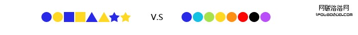 避免僅使用顏色來編碼信息,應盡量同時使用多種視覺變量(如形狀+顏色、尺寸+顏色、注釋+顏色)來對信息編碼。其中,形狀包括了這樣一些可使用的元素:圓形、三角形、矩形等;實線、虛線、點線等;字母、數字符號等。這裡需遵循的一個原則是:使用盡可能少的顏色——結合使用不同形狀符號和少量鮮艷的顏色,效果遠好於只使用一種形狀和多種顏色。