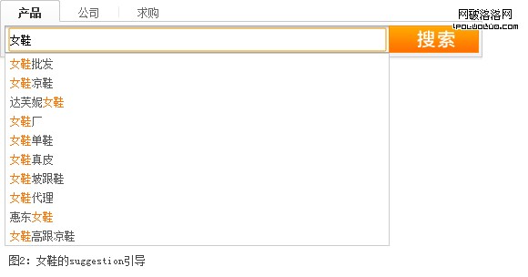 關鍵字描述越詳細,搜索匹配到的產品越准確,用戶也就可以更快的找到目標產品。但讓用戶精確輸入關鍵字的成本較高(如用戶不知道用哪些描述詞更適合等)。如何降低這個成本?我們可以使用suggestion(關鍵字推薦)(見圖2)和SN區(類目屬性篩選區)(見圖3)給用戶恰當的推薦和引導。