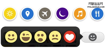 用戶的操作形式也非常的新穎,都是基於屏幕左下方的那個“+”號圖標——點擊它,6 個擴展選項按鈕隨即彈出,此時的紅色“+”號已經變成了紅色“X”號,提醒用戶再次點擊將會把擴展出來的選項按鈕一並收回。Flash動作的緩動實現帶給用戶輕松活潑的感覺。