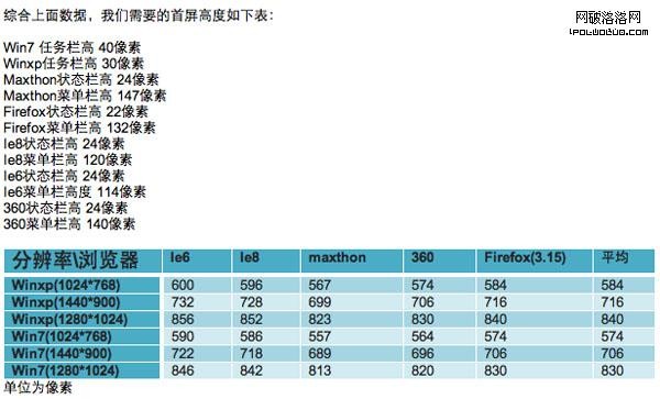 第一步:分析常見分辨率及浏覽器下高度數據