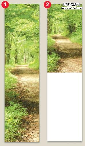 我們需要注意的是要剪切多少才能傳達出原有圖片的主要信息。上圖剪切後的圖片只占到原圖的六分之一,但它仍然能夠清晰傳達出“叢林中的路徑”的主題。但它還是太大,因為我們還有其它東西要放上去,所以……