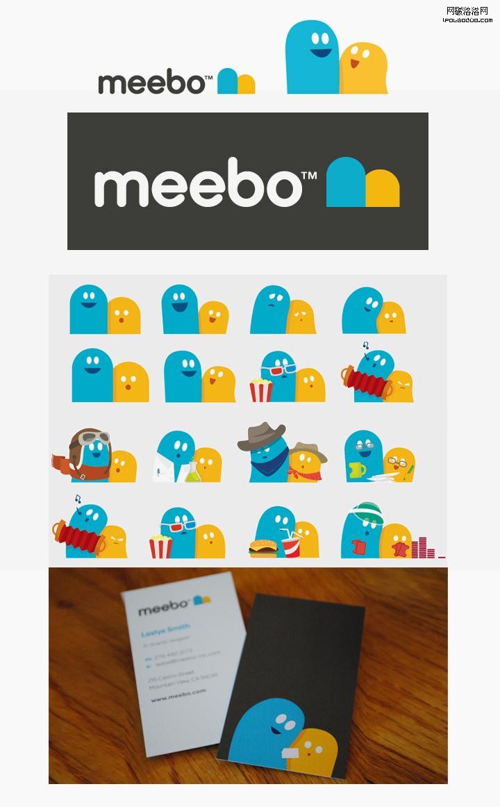 Meebo是一家2005年創立的互聯網公司,旗下的主要產品是基於Web的同名聊天工具的Meebo,Meebo囊括了時下幾乎所有的IM(即時通訊)工具,訪客可通過通訊頻道中的IM工具與個人主頁的主人隨時進行交流。Meboo的Logo後面出現了兩個“手指頭”的卡通吉祥物,一個叫 “Mee” ,一個叫 “Bo”,而2個小家伙不同的表情和場景表現也為LOGO增添了不少樂趣。