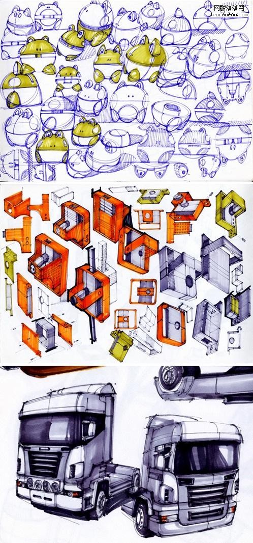 我目前已經畫完了四本,現在正在畫第五本,一開始畫的時候,主要是自己的想法,後來慢慢的變成了收集別人好的想法和造型,到後來又慢慢的側重於自己的設計想法的再現,這其中手繪的風格和手法也有所變化,一開始的時候畫的比較隨意,後來慢慢的畫的比較死板,再到後來放得比較開。