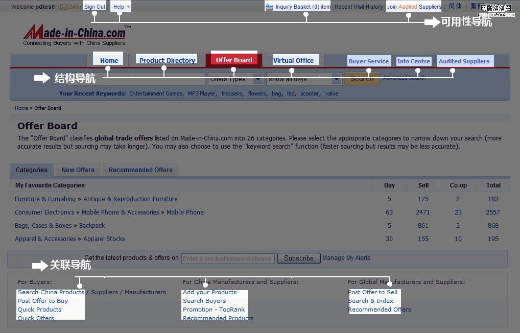 結構導航分兩種:全局導航與局部導航。全局導航一般是指無聯系的信息結構做的一級大分類,方便用戶以最快速的方式了解整個網站有什麼大概內容。而局部導航則關注於用戶最方便的快捷操作和業務引導操作。