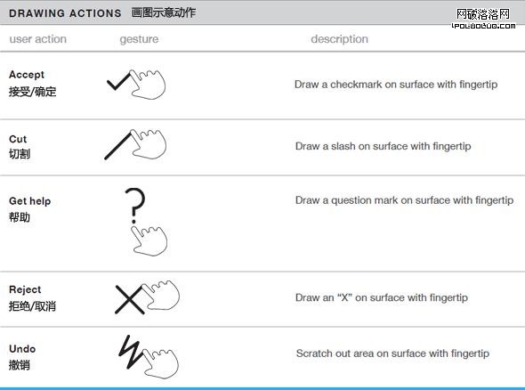 畫圖示意動作是用畫圖的方式來示意某些操作,這些圖形最好是常見易畫的圖形,符合用戶心理預期,如畫勾表示確認,畫叉表示取消。