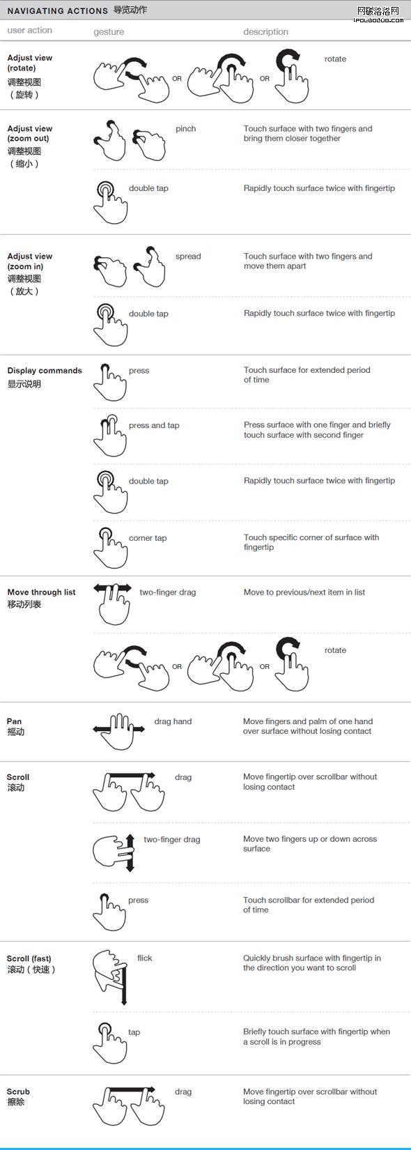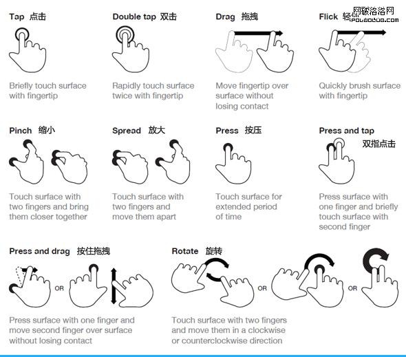 以上都是觸屏設備中常用的手勢操作,是我看到過最全的總結。