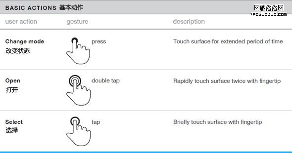 基本動作是觸屏界面中最常用的動作,如打開、選擇等。