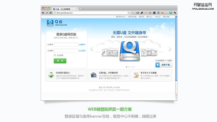網頁版一期首頁,產品側決定:在保證宣傳的基礎上,登錄是重點。經過幾番評審和思考,該界面還是存在重點不明確,登錄與宣傳互搶的問題。對此我們嘗試做出了以下優化。