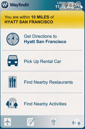 飛機剛剛降落?基於旅客的位置和最後一次訪問互聯網時的信息,Wayfindit Trip Planner app就能立即提供一輛出租車,以及附近的餐廳或活動信息,或到酒店的路徑(以及酒店距離此處的距離)。