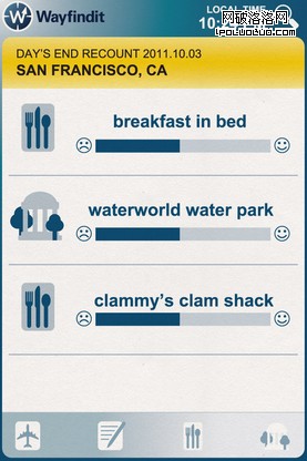 一日結束後的回顧總結能讓旅行者留下更深刻的旅行記憶,這同時也能提升Wayfindit Trip Planner App的明日推薦。Wayfindit Trip Planner App提供了一些漂亮的HTML5表單,讓用戶可以很方便地為當天活動作出評級。