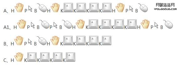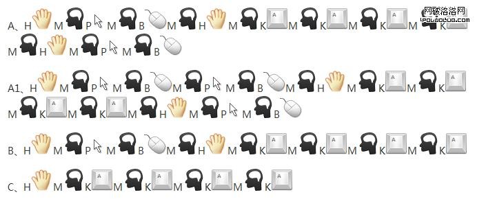K(敲擊鍵盤)、P(移動鼠標至目標)、B(點擊鼠標)、M(心理准備)、W(等待系統響應)。