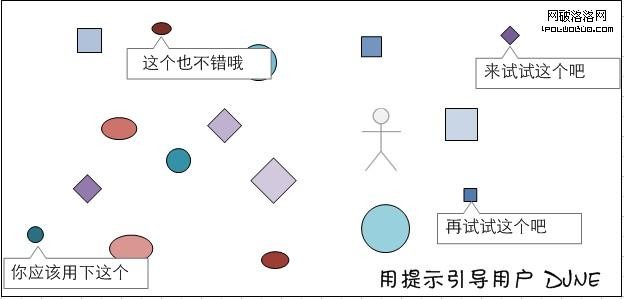 這樣的提示框在許多產品中都可以見到,通過固定程序或後台按部就班的向用戶推送著各種功能提示。這種提示效果不是很理想,偶然碰巧才會推送到用戶感興趣的,並且對用戶形成了一定的某種騷擾