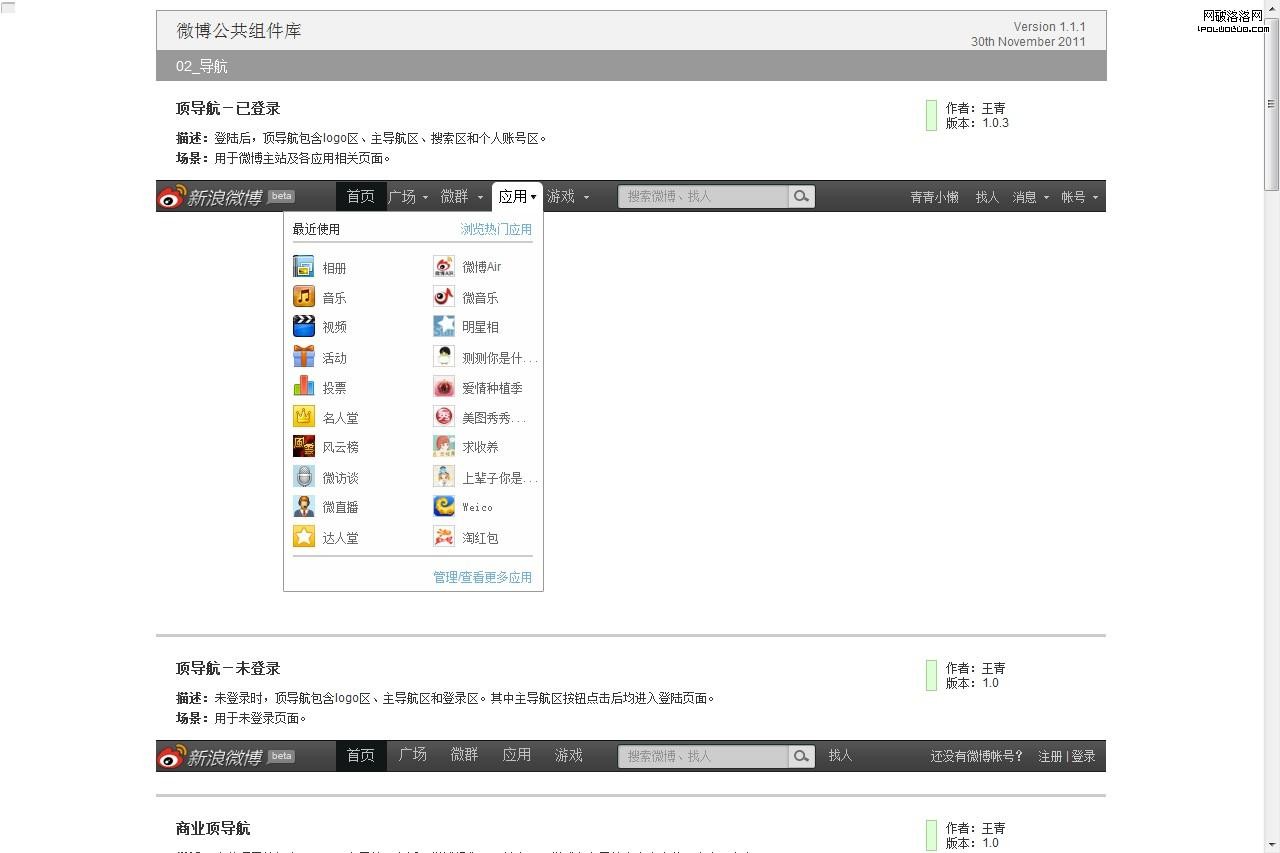 11年11月份,由@zway 同學負責的桌面客戶端組件庫也正式對內發布;同時,主站組件庫正式更名為“微博公共組件庫”服務於所有微博產品;