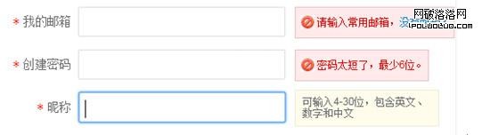在處理表單過程中,會考慮提示信息所在位置,包括默認提示,出錯提示,正確提示等,如果提示風格不統一,會中斷用戶行為,頁面表單填寫過程中的流暢度非常重要,為什麼會提起這一點,因為在實際工作中,如果沒有交互設計經驗,不論產品還是設計人員都經常會遺漏表單相關的各種提示信息,但這會影響頁面構建過程中HTML的結構,因此如果前期發現產品文檔,或者設計稿都沒有表現出相關內容,不妨提醒他們務必考慮並添加好,減少後期調整頁面結構的冗余工作量。