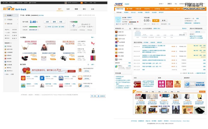 中國最牛的兩家交互設計公司--淘寶和騰訊,一直在PK。這次我的交互體驗的感覺,在色彩、布局等,財付通都略勝一籌。大概支付寶已經看到了自己的不足,開始改版了。讓我驚喜的是,這次改版支付寶駕馭在財付通之上,做了很多的優化,改版前和改版後簡直判若兩“人”。
