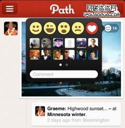 雖然最好的用戶體驗不會全部歸功於UI設計,但無疑這是很重要的一部分。比如社交應用Path,當你喜歡一個好友分享的圖片時,點開右上角的微笑小圖標,便會順暢的滑出一個選擇框。其中表情有四個:微笑、眨眼、驚訝和哭臉,還有一個表示“最愛”的心形圖標。這樣就通過微妙而顯眼的圖標將人們的心情表示出來了,准確又不失風趣。