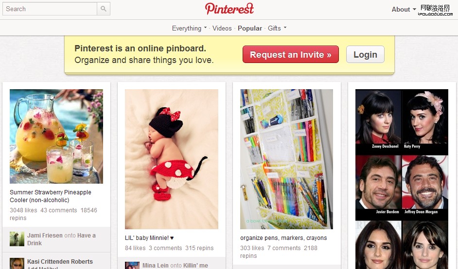 最好的例子就是圖片分享網站Pinterest,它通過用戶上傳篩選吸引人的圖片,不斷地給用戶提供他所喜歡的。這樣既吸引用戶不停的浏覽,同時又創造了更多的傳播,這是站內病毒式傳播的絕佳例子。它不僅解決了人們存儲交流圖片的問題,同時又滿足了所有人的好奇心和虛榮心。想想,你現在看到心愛的圖片還會存到根本沒人看的電腦硬盤裡嗎?