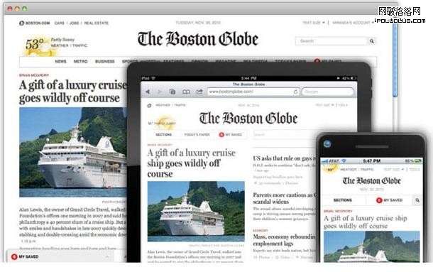 周一,波士頓環球報發布了面向手機的付費網站—BosonGlobe.com。不要把它和官方免費旗艦站點Boston.com混淆在一起。這本身並沒有那麼有趣。然而,HTML5開發社區對BostonGlobe.com大加贊賞,稱贊網站的內容根據屏幕的大小進行調整是種創新,這種創新叫做響應式設計。