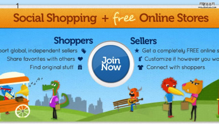 (如上圖)Envy小店的登錄頁面用位於正中間的行為請求按鈕來向用戶打招呼。這個圓形的按鈕在白色邊框的襯托下顯得格外顯眼,並且強有力的刺激著賣賣雙方在閱讀完周圍的文字後加入該網站。